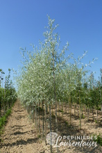 H: 5 à 10m. Port aérien. Feuillage garni sur les deux faces de soie gris argenté. Très décoratif.